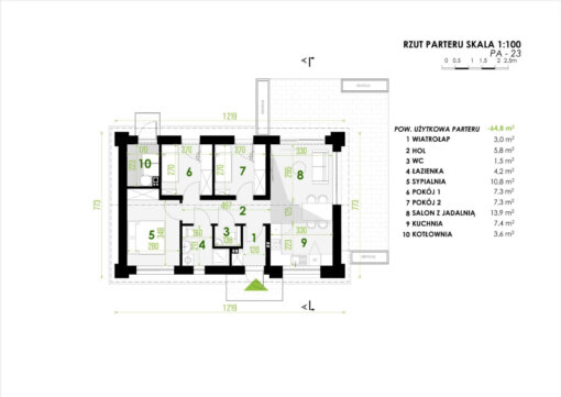 61,2 m² + 3,6 m² kotłownia