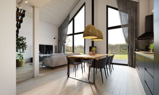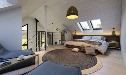 Erna 3 to stylowy dom parterowy z antresolą pracowni Archetyp dla 2-4 osób. Oferuje salon z aneksem, sypialnię, toaletę na parterze i dodatkową sypialnię na antresoli, na powierzchni 68,33 m². Wysoka jakość budowy, dostosowanie do potrzeb klienta.