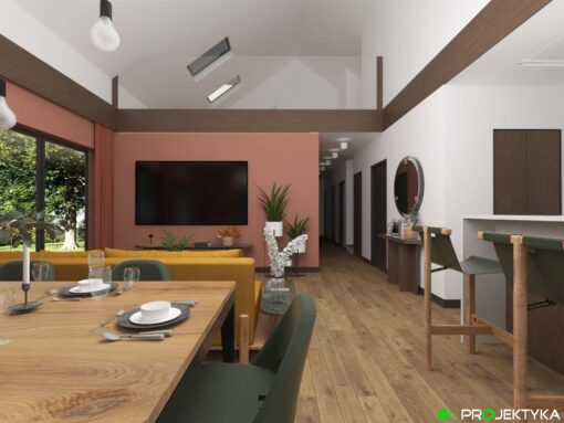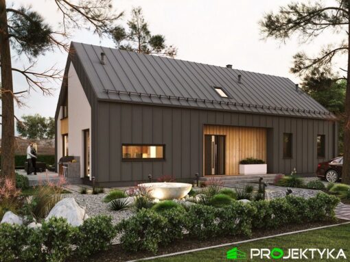 Dom drewniany z poddaszem w technologii szkieletowej dostępny w wersji mieszkalnej przeznaczony dla 2-4 osobowej rodziny.