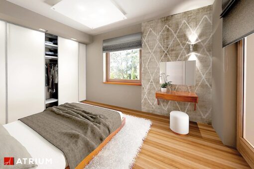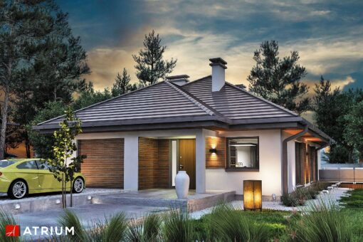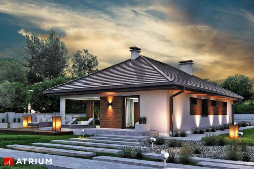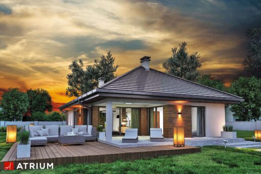 Atrium Sfinks VI SZ to nowoczesny dom parterowy z garażem, o powierzchni 98,30 m², idealny dla rodzin 2-4 osobowych. Zaprojektowany w technologii szkieletowej, łączy salon z jadalnią i kuchnią, dwie sypialnie i łazienkę, zapewniając funkcjonalność i komfort. Charakteryzuje się nowoczesną bryłą i jest dostępny w różnych wariantach wykończenia, oferując ciepło i nowoczesność w jednym.
