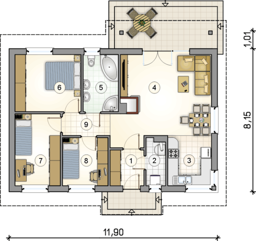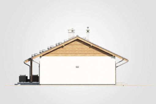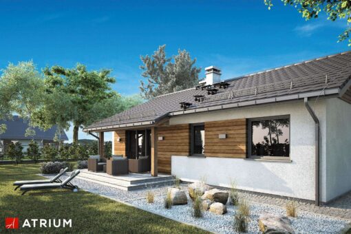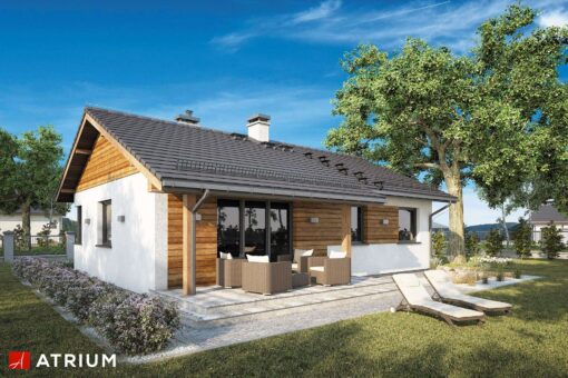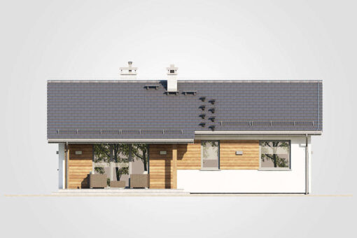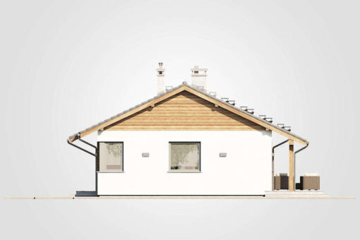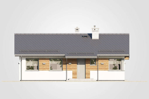 Dom drewniany parterowy w technologii szkieletowej dostępny w wersji mieszkalnej przeznaczony dla 2-4 osobowej rodziny.